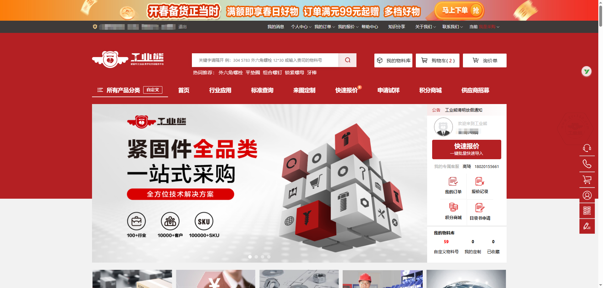 工業(yè)熊長期深耕緊固件垂直領域,圍繞產(chǎn)品供應、技術支持、行業(yè)應用、數(shù)字化采購與供應鏈協(xié)同,不斷提升平臺綜合服務能力。通過整合標準件、非標件、進口品牌及行業(yè)配套資源,工業(yè)熊持續(xù)為客戶提供更高效、更專業(yè)、更穩(wěn)定的一站式緊固件解決方案。